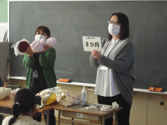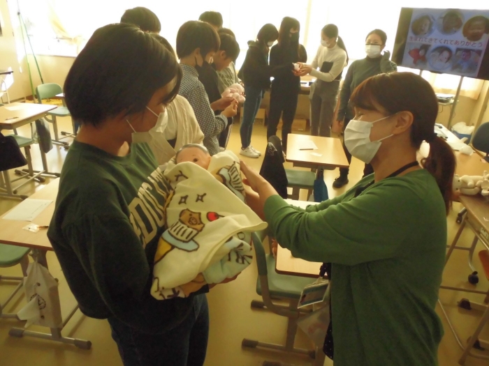 6年生 「生と性の学習」 2023年11月21日(火) 別海町の保健師さん、助産師さんをお迎えして「生と性の学習」を行いました。生まれるということの奇跡、赤ちゃんの成長過程の様子、お母さんやお父さんの思いなど多くのことを学びました。 だっこの仕方、上手ですね。 見つめ合って、話すことで赤ちゃんは育ちます。