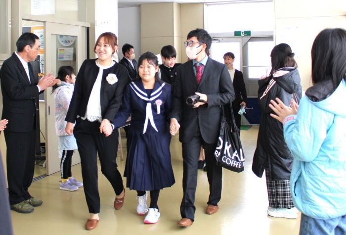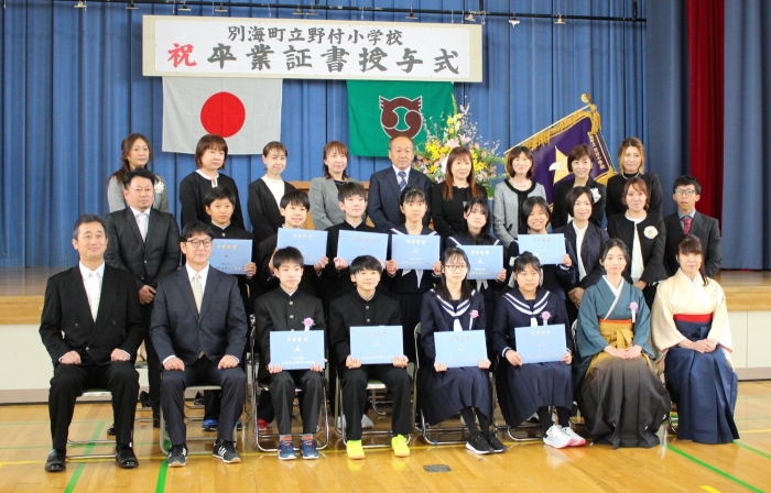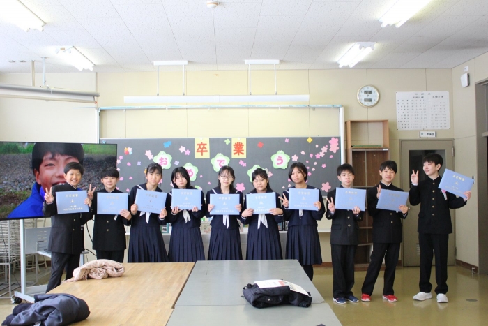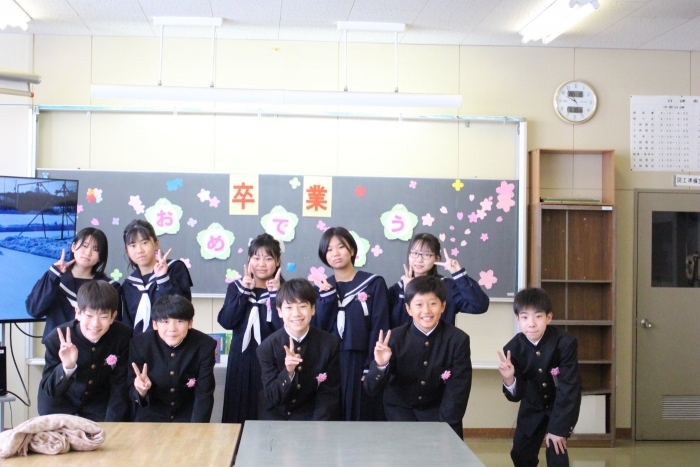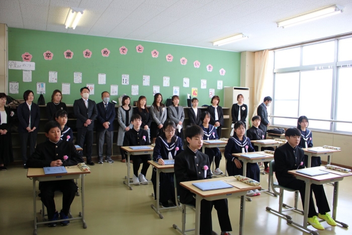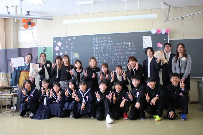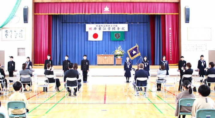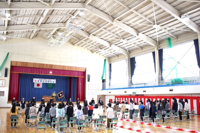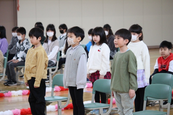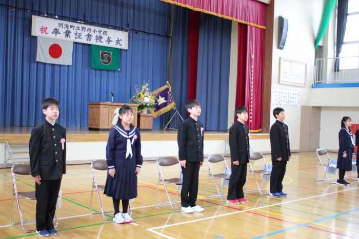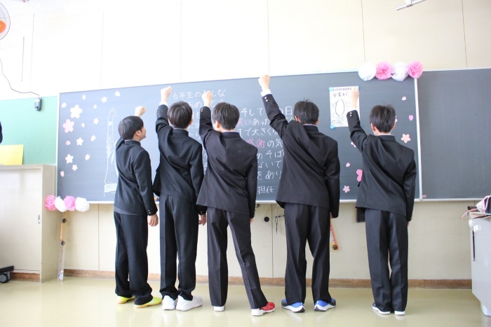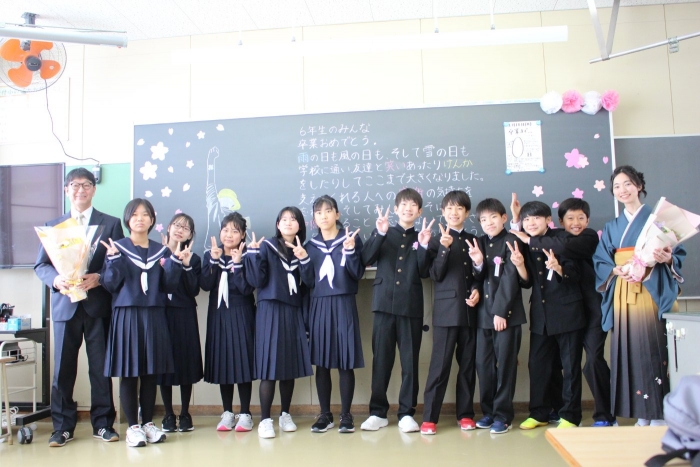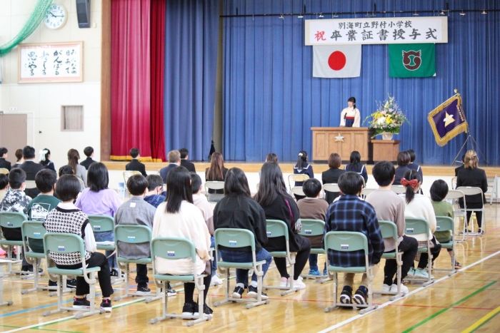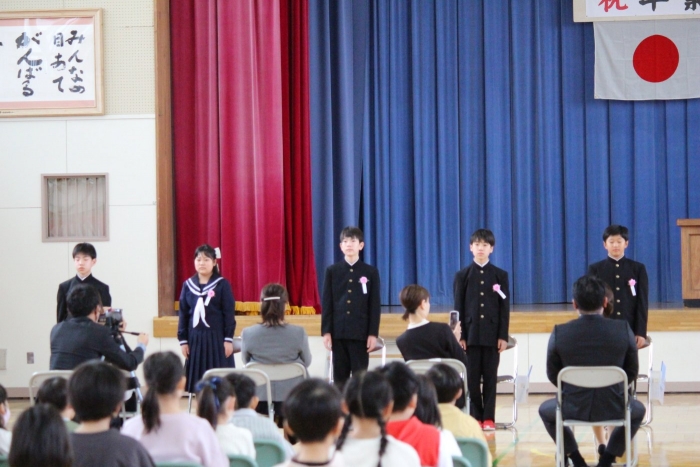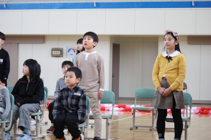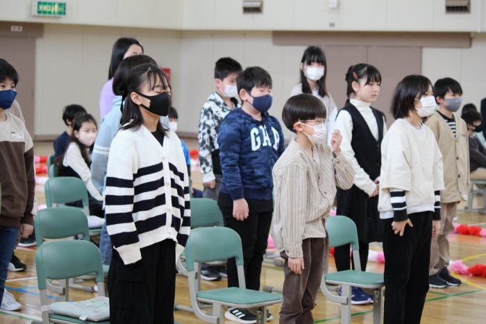 10名の卒業生が式に臨む凛とした姿からは、6年間の大きな成長を感じました。この一年、最高学年として全校児童をリードしてくれた大好きなあこがれの6年生のために、在校生はありがとうの心を込めて、渾身の呼びかけや歌声を贈りました。