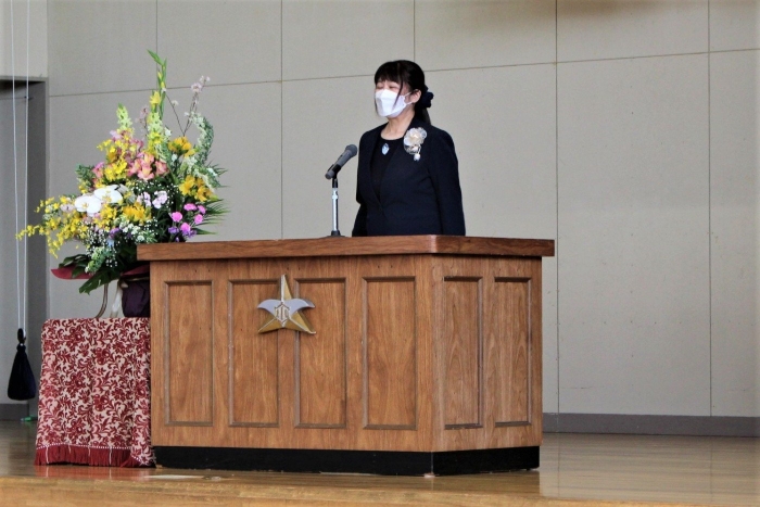 次に、令和4年度の始業式を行いました。一人一人進級の喜びを胸に、令和4年度がスタートしました。校長からは、野付小学校の合言葉「あいさつ・えがお・おもいやり」の話をしました。