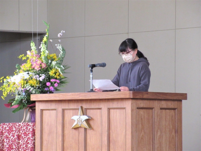 そして、勉強だけではなく新一年生の見本になりたいです。歴代の卒業生のように、みなさんの手本になるように六年生という自覚をもって生活を送っていきたいです。そのためには、「あたりまえを守る」、「人の気もちを考えられる」ことが大切だと思います。
