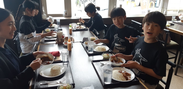 足寄に到着。昼食をとった後、化石博物館で化石ほり体験と館内の見学をしました。
