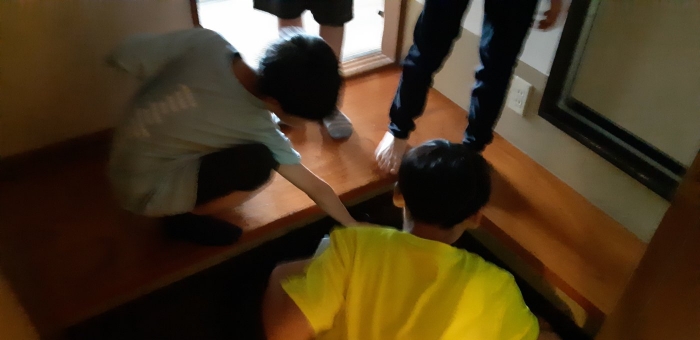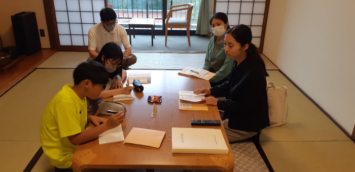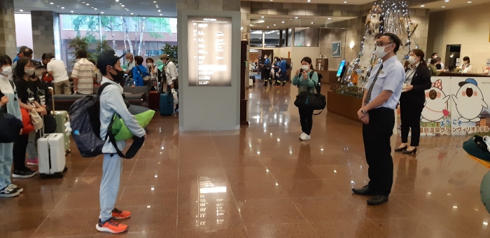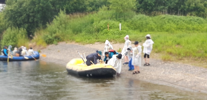 川下りの最後は少し雨に濡れましたが、みごとに上達したパドルさばきで元気に帰ってきました。途中、黒曜石を発見できました!明日の研修や学校の授業につながるお宝をたくさん見つけて、楽しみにしていたホテルの時間が始まりました。