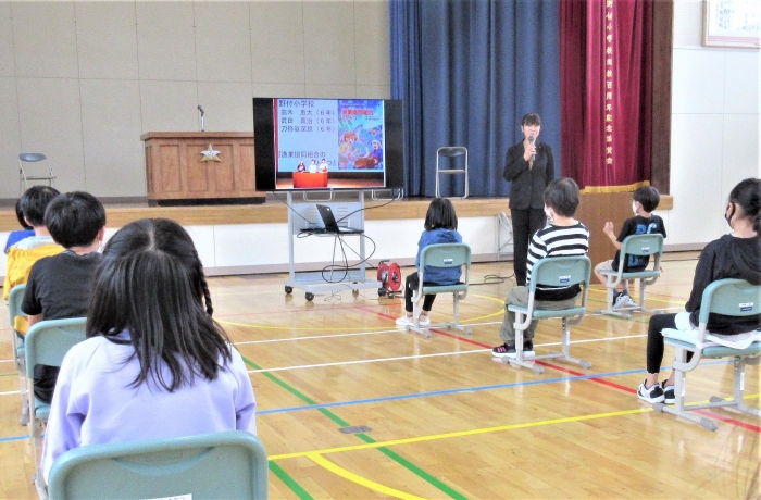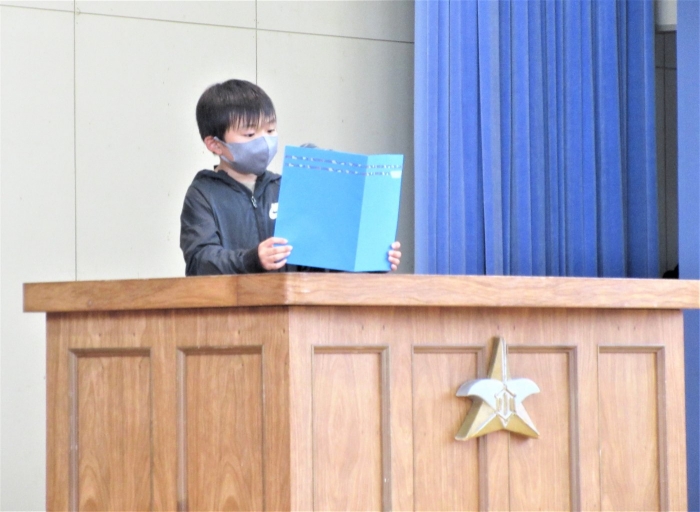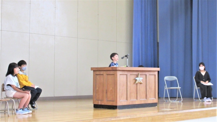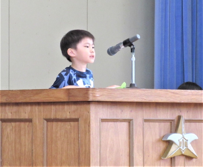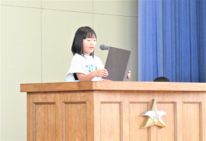 今日から2学期が始まりました。夏休みの思い出と学習の成果物や作品、(1年生は伸びやかに成長したあさがお)を持って、元気に登校しました。始業集会では、5人の代表児童が、夏休みの思い出や2学期に頑張りたいことを全校児童に語りました。校長からは、1学期末の学校評価アンケートの結果を説明し、1学期の頑張りと成長を2学期と3学期の挑戦につなぐ「にこにこ大作戦」の話をしました。88日間が一人一人の児童の心と体と頭のにこにこに満たされて健やかな成長の2学期になるように、子どもたちの挑戦を全教職員で全力サポートします。