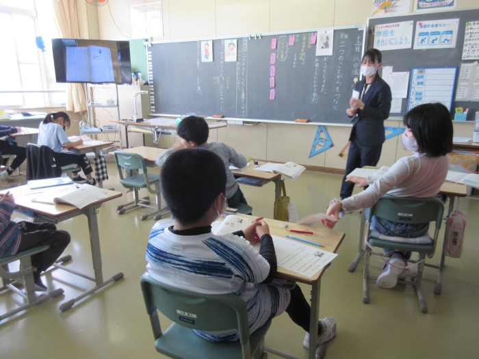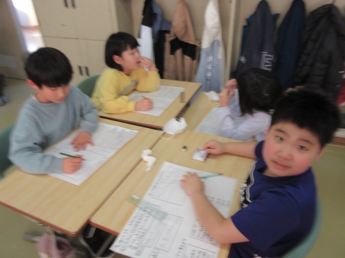 授業参観日 2023年12月08日(金) 行事 保護者の方に見守られ算数の問題に挑戦する6年生 多くの保護者の皆様に来校していただき、授業参観日が行われました。玄関でお父さん、お母さんを待っていて1年生をはじめ全校児童が、頑張る姿を観ていただきました。ご多用の中、足を運んでいただき、ありがとうございました。 1年生はクマ学習で学んだことを表現しました こだわりと工夫がいっぱい! 2年生は算数の授業です! 九九表から見つけたことを話し合いました 3年生は体育 4年生は国語 5年生は専科の先生の理科の授業です! 2学期の学習成果物も観ていただきました!