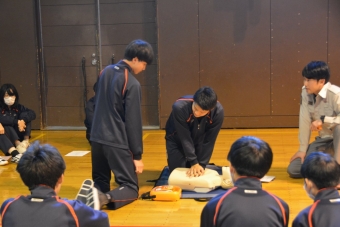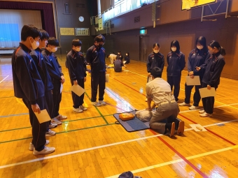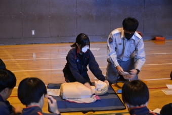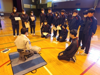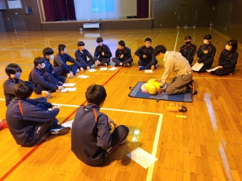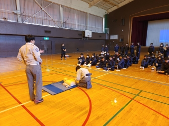 【別海中央中】3年救命救急講習 2024年11月15日(金) 授業の様子 昨日の2年生に続き、本日は3年生が別海消防署の署員の方々を講師に救命救急講習を実施しました。今後傷病者と遭遇した際には、講習で学んだ救命法で迅速かつ適切な処置を施し、傷病者の重症化を防ぎ、命を助けられるようなに行動してほしいと思います。 お忙しい中、2日間ご協力をいただきました別海消防署の皆様に感謝申し上げます。
