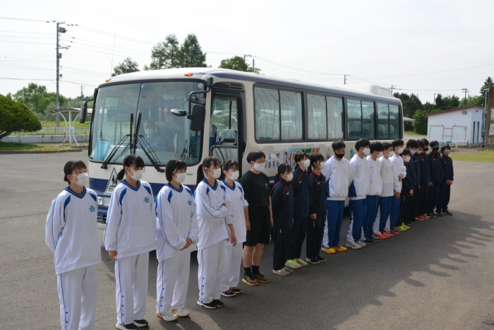地区中体連大会に向けて本日も選手が出発しました。今日はバレー部が決勝トーナメント、サッカー部が中標津合同チームとの決勝戦、男女バスケ部が大会2日目に臨みます。緊張感を持ちつつ落ち着いた雰囲気の中、選手は出発しました。今まで積み上げてきたものを全力で出し切って欲しいと思います。
