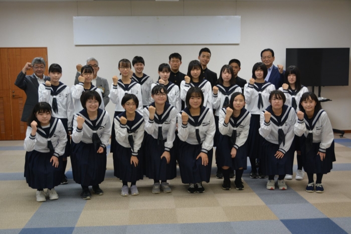 早い競技では明後日から出発する中体連全道大会の表敬訪問を本日行いました。全道大会出場の助成をしていただく感謝の気持ちを込めて、参加の報告と意気込みを町長様をはじめ教育長様の前で力強く述べていました。時間の都合や感染症対策で代表のみの発表でしたが、全道ベスト4以上など各部の目指す目標を宣言していました。