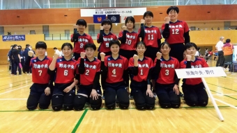 伊達市で行われているバレー大会では予選ブロックを2勝し、1位通過で決勝トーナメントに勝ち進みました。決勝トーナメントでは1回戦で留萌代表の遠別中に勝利し(25-18、25-17)、明日は準々決勝で岩見沢東光と対戦します。