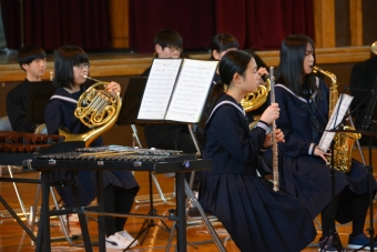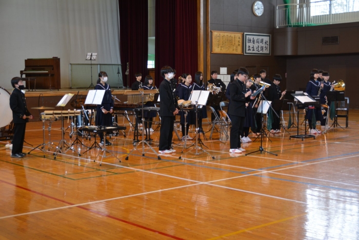 【別海中央中】吹奏楽部「うぃんたぁコンサート」 2023年02月19日(日) 少年団・部活動 2/19に吹奏楽部が中央中体育館で「うぃんたぁコンサート」を開催しました。定期演奏会終了後から1・2年生のみで活動してきた成果を発表するコンサートとなりました。会場には、保護者の皆さんや3年生が駆け付け、素敵な演奏に聴き入っていました。