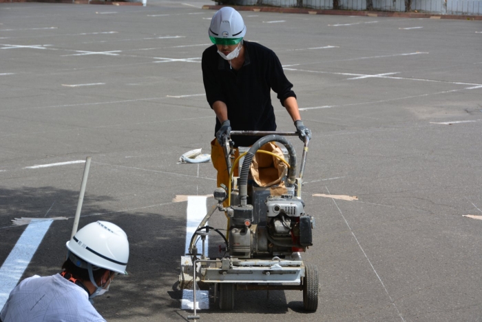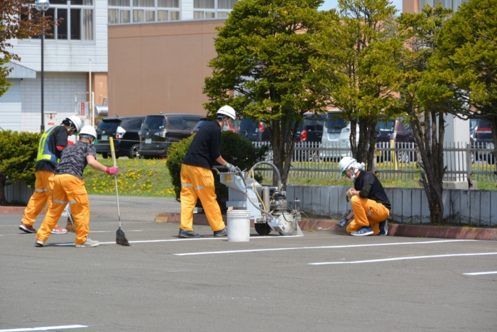 【別海中央中】駐車場の駐車ラインがきれいになりました。 2022年05月17日(火) 日々のできごと 本日、網走市の株式会社ロード工業様が社会貢献事業として、本校駐車場の駐車ラインをきれいに整備してくださいました。こちらの地域に道路作業で来ているということでボランティアで作業をしていただきました。 プロの皆さんが引くラインははっきりと美しく、給食車用のゼブララインも引いていただきました。お忙しい中を、時間調整をしていただき作業頂いた株式会社ロード工業様には深く感謝を申し上げます。