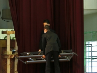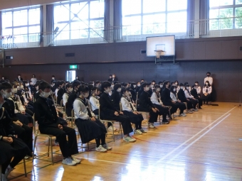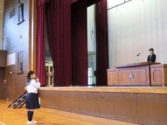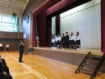 本日、全校集会がありました。集会の内容は、部活動等の大会表彰と今週末に開催される中体連水泳大会の壮行式、そして明日で教育実習を終えるM先生の離任式でした。