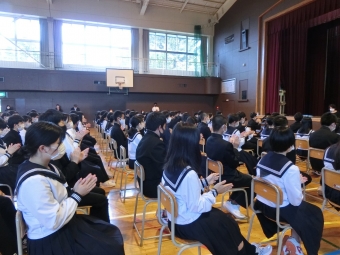 実習生離任式では、実習生からの挨拶と生徒会副会長からお礼の言葉がありました。明日で実習は終わりますが、根室管内に採用されて先生として戻ってきてほしいと思います。