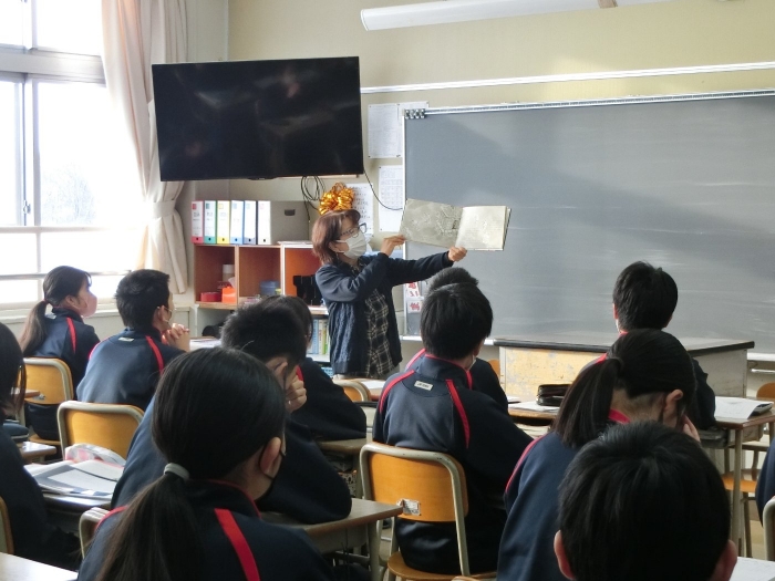 【別海中央中】ステップの会(読み聞かせ) 2023年01月24日(火) 日々のできごと 本日はステップの会の皆さんによる読み聞かせがありました。降雪による道路状況等により4名の方のみの来校で、1Aのみ通常の朝読書となりました。朝のお忙しい中、また除雪等がある中で来校いただいた「ステップの会」の皆さん、ありがとうございました。 1B「こぶじいさま」 2学年「あかねこちゃん」 3A「桃源郷ものがたり」 3B「続ぼくを探しに ビッグ・オーとの出会い」