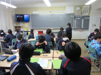 【別海中央中】 連休明け 2025年05月07日(水) 気温が低い朝でしたが、中庭の桜が咲き始めました。 昨年より1週間遅れての開花です。 連休が終わり、授業が再開しました。 1時間目の授業を紹介します。 気持ちを切り替え、意欲的に授業を受ける様子が見られました。