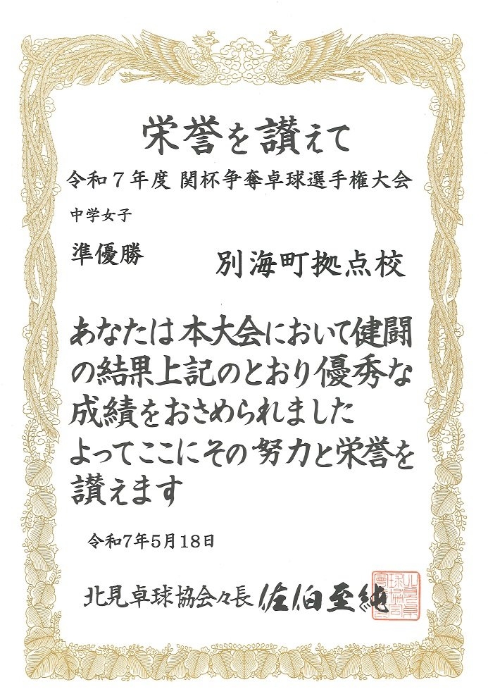女子チームは予選リーグを1位で通過し、準々決勝を北見小泉中、準決勝を標茶中に勝利して決勝に進みました。決勝は釧路鳥取中Aに2-3で敗れましたが、全道屈指の強豪チームとの対戦を通して、たくさんの経験を積むことができました。