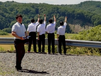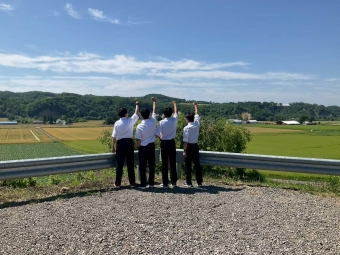 現地の天候は30℃超えですが、からっとした天候です。一行は十勝清水~新得町~南富良野を通過しました。皆、元気です!