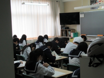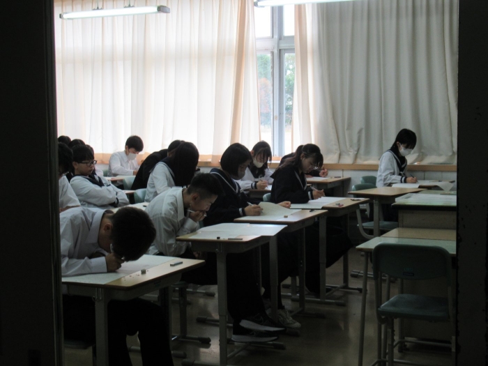 【別海中央中】 学力テスト・総合B(3年生) 2025年10月09日(木) 朝から3年生の教室の雰囲気が違いました。 学力テストの意味を理解している証拠です。 教科書やノートを広げ、最後の確認に努力する姿が見られました。 1時間目、国語の問題に取り組む様子を撮りました。 (集中力を妨げないように廊下から撮影しました)