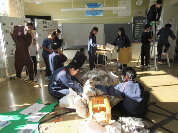 【別海中央中】 第58回文化祭(10)~後片づけ~ 2025年10月29日(水) NEW 文化祭が終わりました。 1時間目は、全校生徒で後片付けを行いました。 最後の最後まで丁寧に作業する生徒の姿が見られました。 文化祭の価値が、5倍、10倍に膨らみました。 2時間目、それぞれの学級で振り返りを行いました。 合唱コンクールの動画を視聴し、学級の成長を確認する時間になりました。