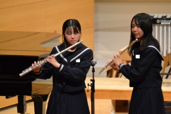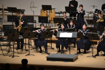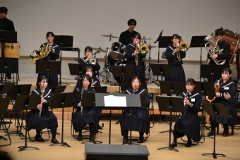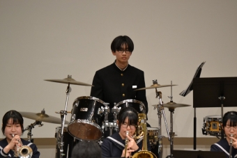 吹奏楽部は定期演奏会のプレ発表と位置づけ、「不思議の国のアリス」「勇気100%」を演奏しました。