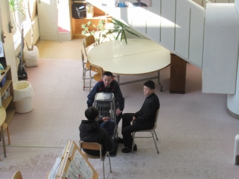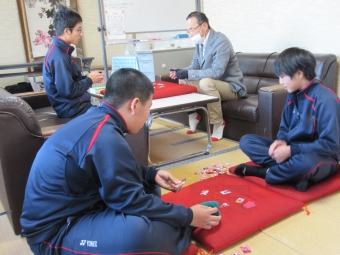 【別海中央中】昼休み 2025年11月19日(水) NEW 15分間の昼休みを、生徒は楽しみにしています。 グラウンドでサッカーやキャッチボールをする生徒、体育館でドッヂボールをする生徒、教室でトランプをする生徒…。 思い思いの過ごし方で心を癒しリフレッシュをします。 そんな15分間が、午後の授業の活力になっています。 火曜日はスクールカウンセラーの今井先生が来校します。 2階の和室は、今井先生を慕う生徒が集まります。 今日は花札をして過ごしていました。 玄関前ホールも憩いの場です。 ストーブを囲み、3年生男子が談笑していました。