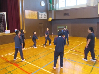 【別海中央中】1年生合同体育「バレーボール」 2025年12月08日(月) NEW パス練習を中心に基礎技術を学習してきました。 バレーボールは、同じ人が2度続けてボールに触れることができません。 そして、3回以内に相手コートにボールを返す競技です。 その特性を理解し、ボールをつなげることで試合が盛り上がります。 これまでの学習の成果を確認することを目的に試合を行いました。 声を掛け合い、ボールを繋げました。 1年生なりにラリーが続き、大いに盛り上がる場面がたくさんありました。