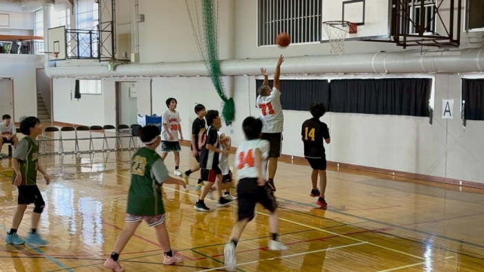 ミニバス経験者も、ボールの大きさに戸惑います。