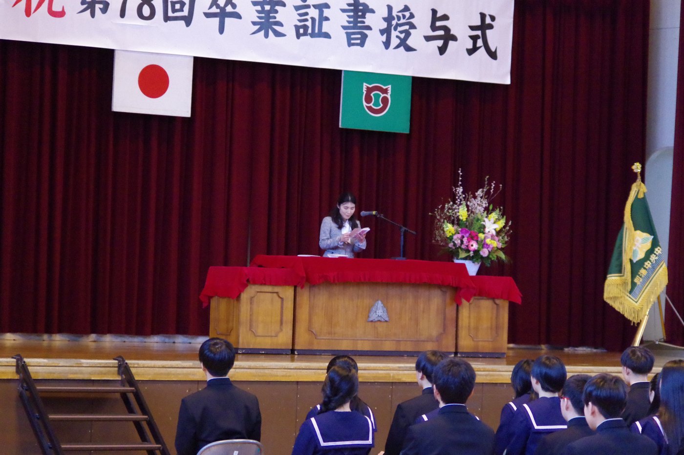 卒業生を代表してSWさんが、答辞を読み上げました。