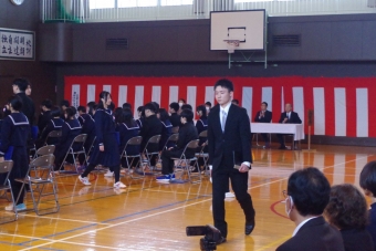 在校生、保護者から贈られた温かい拍手の中、3年生63名が入場しました。
