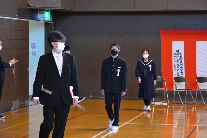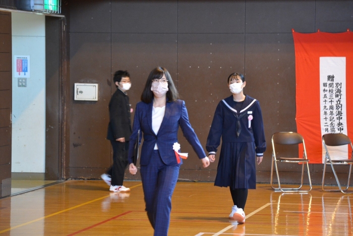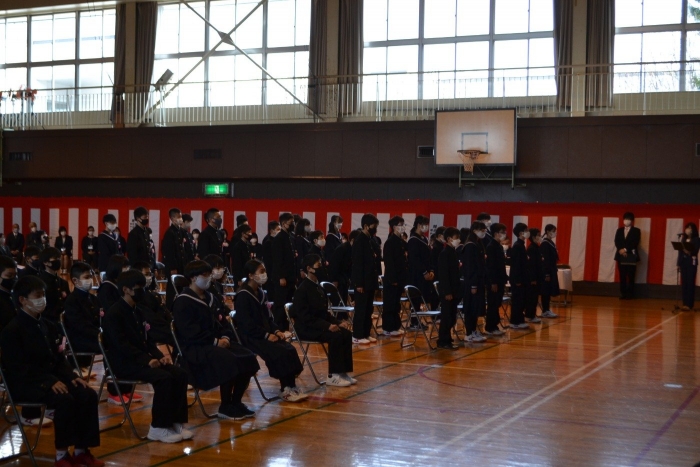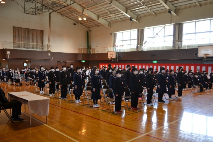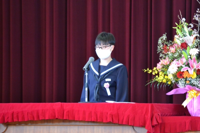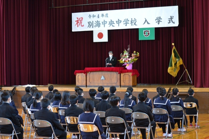本日、新入生71名を迎え令和4年度入学式を挙行いたしました。感染症対策のため、式には新入生、保護者2名、教職員、来賓はPTA会長さんのみ参加し、在校生は参加しない形で式は行われました。
