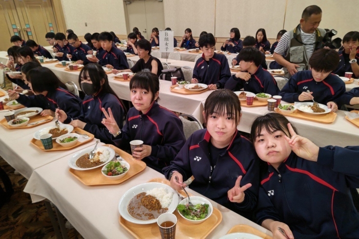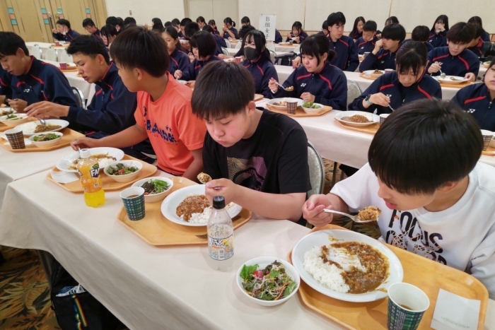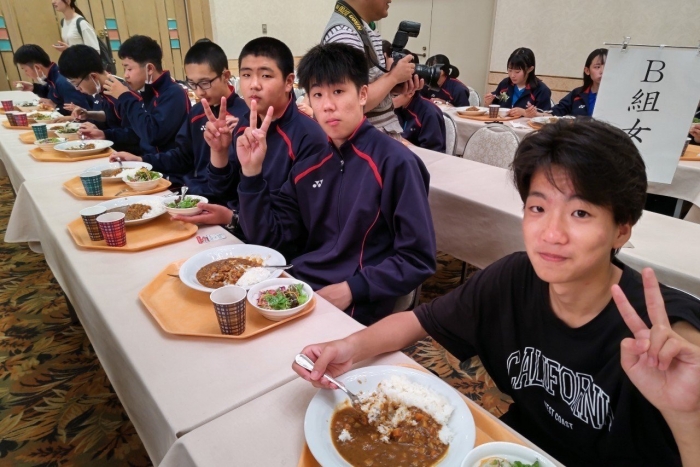 【別海中央中】修学旅行⑦ 2023年07月12日(水) 行事 2日目の昼食はルスツリゾートでの定番カレーライス(ビーフ)です。皆さん残さず食べていました。昼食後は、登別マリンパークに出発です。天候は雨で、本降りになりそうですが皆さん元気に活動しています。
