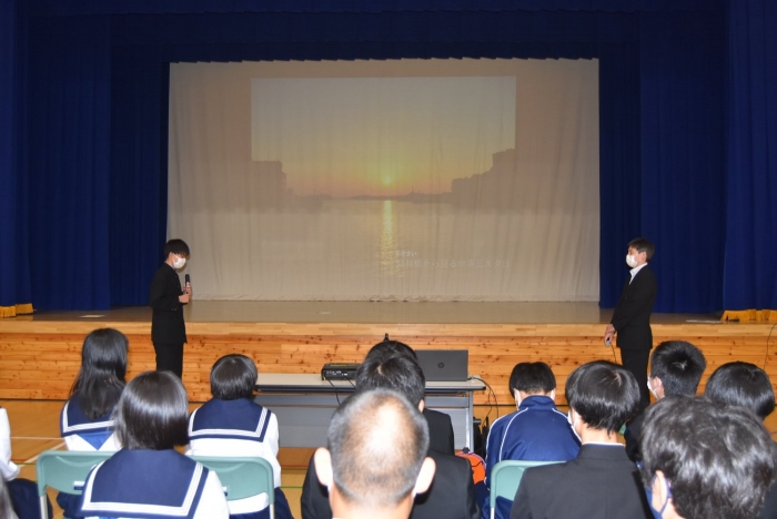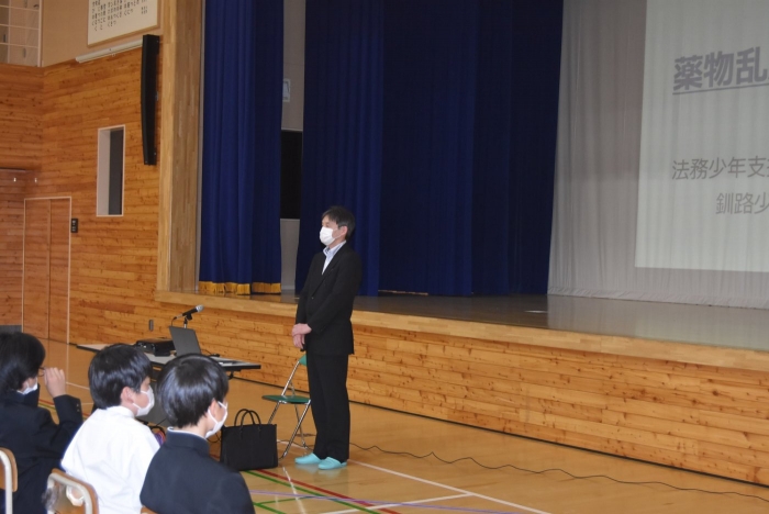 薬物乱用防止教室 2022年07月20日(水) 授業の様子 昨日は法務少年支援センターの方を講師にお迎えして 薬物乱用防止教室を実施しました。 初めに、この授業を担当する養護教諭の先生からの問いかけで 薬物乱用防止教室を毎年行っている理由について考える場面があり、 講話が始まりました。 薬物の恐ろしさはもちろん、もしも・・・の時に自分はどうしたら良いのか 考える機会となりました。 講師の方はl釧路から来てくださいました。 真剣に聞きます。 質問もしました。 生徒を代表してお礼の言葉。