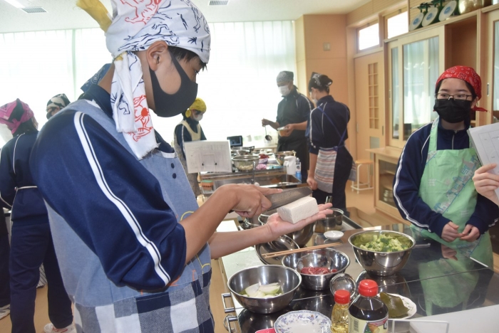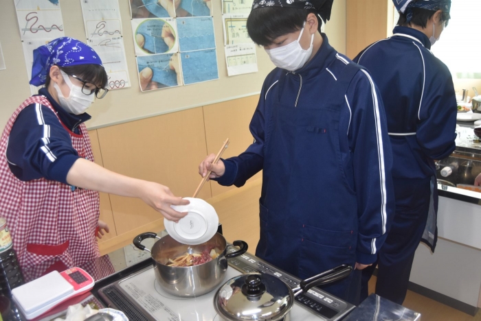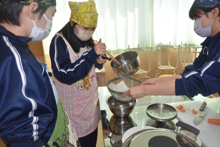 先週の金曜日の2年生の家庭科の授業では、調理実習を行いました。