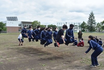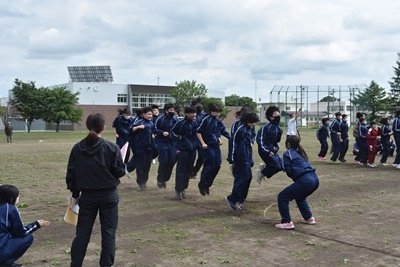 体育祭特別時間割レポート 2023年07月04日(火) 授業の様子 今週は午後から体育祭へ向けた練習を行っています。 昨日の練習の様子をお届けします。 5時間目は全体で100m走と学級対抗長縄跳びの試技を行いました。 6時間目は各チームの練習です。