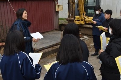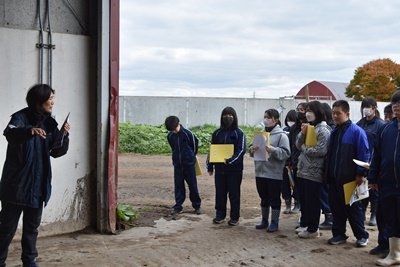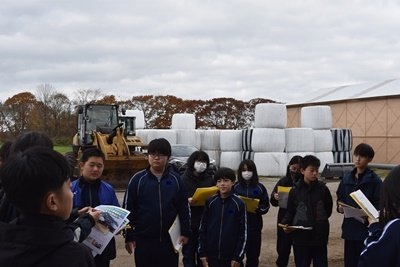 1年生が総合的な学習の時間の単元「ふるさと学習」の学習で、持続可能な別海町の街づくりの実践例を学ぶために、バイオガス発電所を訪問しました。