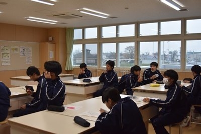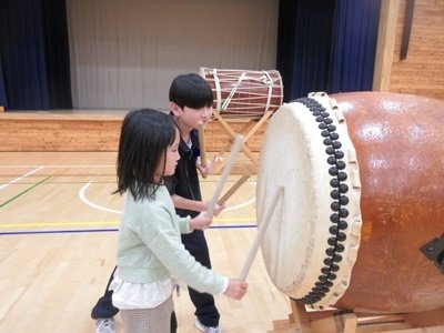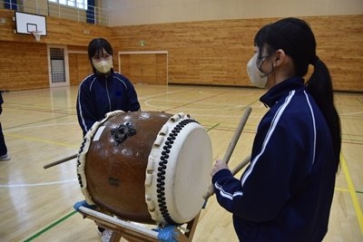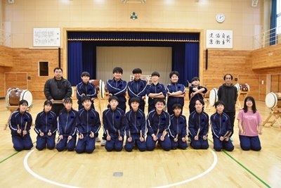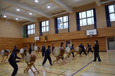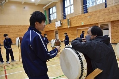 歯科指導を終えた2年生は、続いて本別太鼓保存会の皆さんから太鼓を学ぶ授業でした。