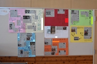 12月のまわし読み新聞 2023年12月19日(火) 授業の様子 今月のNIE活動は、まわし読み新聞です。 昨日各学級で作成したまわし読み新聞が仕上がって、早速掲示されています。 1年生は、10月に行った「読めば分かるクイズ」を取り入れている班もありました。 2年生は自分の考えがしっかりと書かれています。質が高まってきました。 深いコメントが記載されている3年生。今回のグランプリはどれかな?