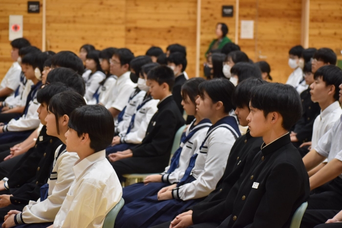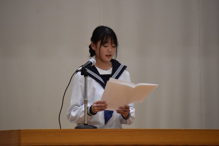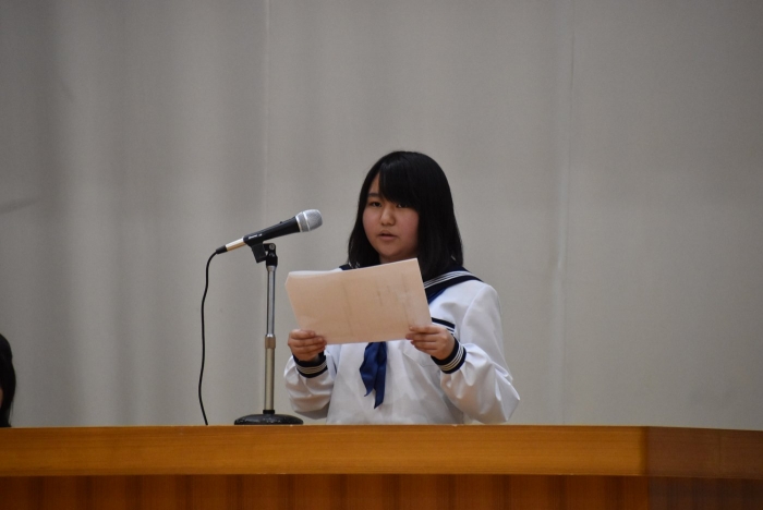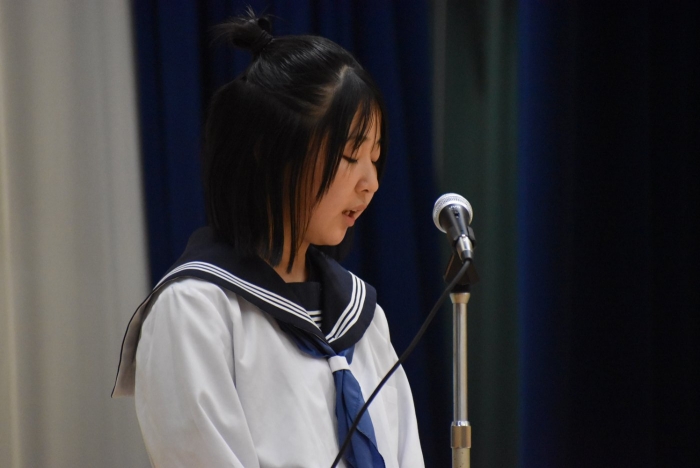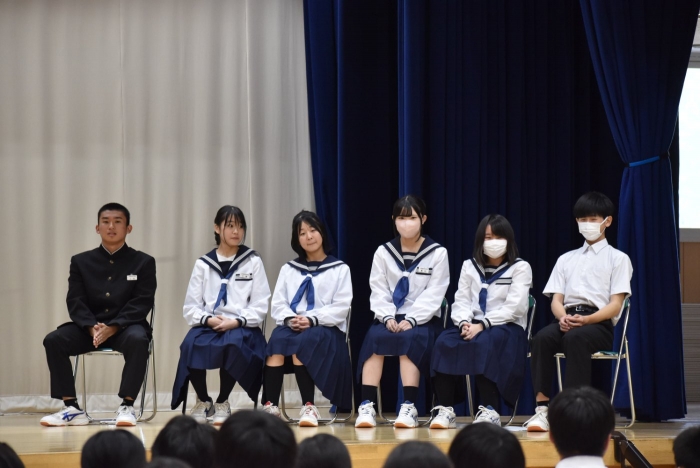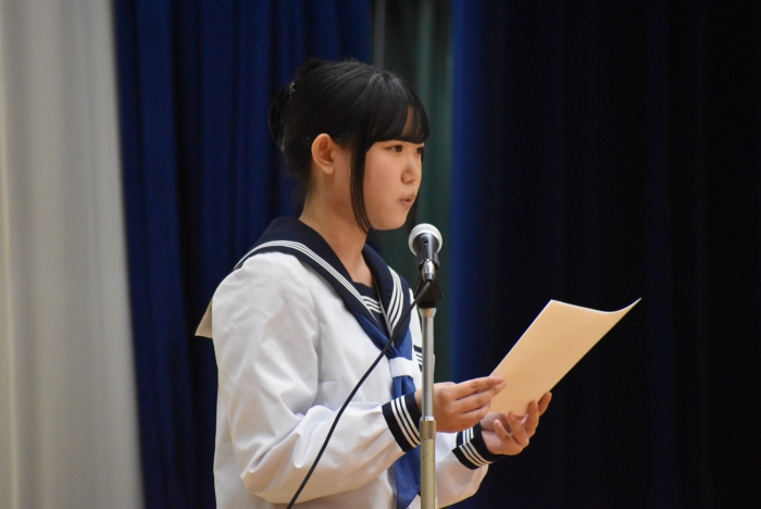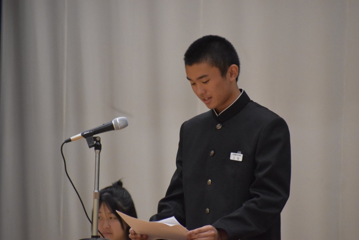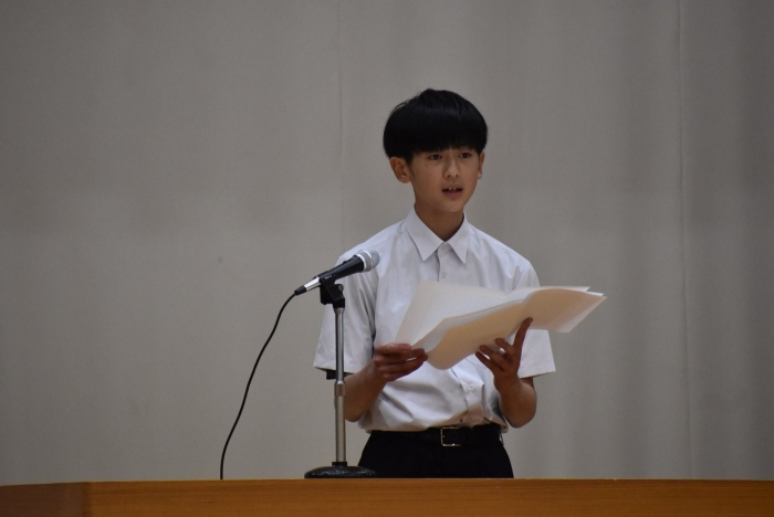 校内弁論大会行いました! 2024年09月26日(木) 日々のできごと 26日(木)、校内弁論大会を行いました。学級内予選で選出された各2名、計6名の代表者が全校生徒の前で、自分の主張を立派に論じました。共感できる内容やその主張の根拠、結果として予想できるメリットやデメリットなど色々と聞くことができ、とても勉強になりました。 結果として、2年生の髙橋柚希さん「タブレット学習による漢字力の低下」と1年杉本直央さん「見た目に関する校則について」の2名が優秀賞となり、11月に行われる別海町少年の主張大会に参加することをお知らせいたします。おめでとうございます。