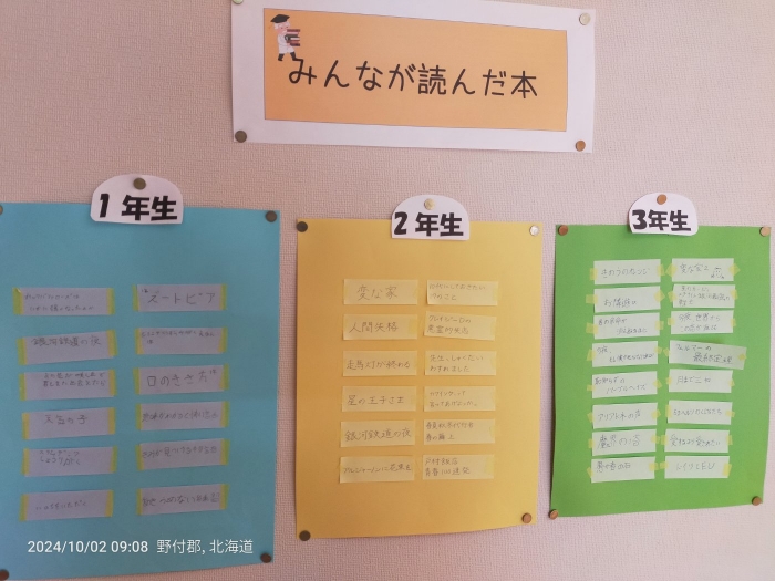 後期に入り、1日(火)に全校集会が行われました。最初に、夏休みを読書に親しむ機会にしてほしいという目的で図書委員会が企画した「読書カードコンクール」で入賞した4名が表彰されました。校内には生徒が読んだおすすめの本のタイトルも掲示されていますので、毎週水曜日の図書館開放日にもぜひご覧になって欲しいです。