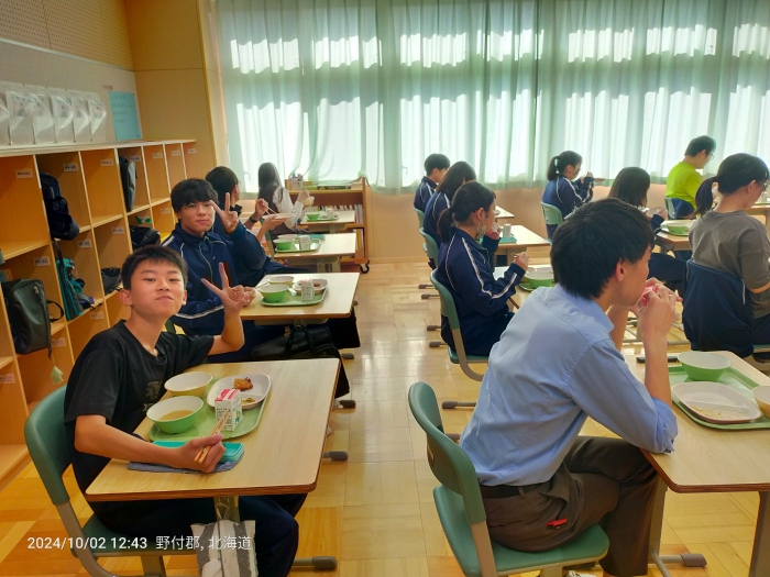 今週2日(水)は別海高校からインターンシップとして本校の卒業生でもある1名が来校し、授業参観や2年教室に給食に入り、生徒交流をして1日を過ごしました。
