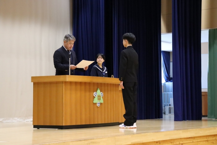 午前中の授業のあと、午後から大掃除や表彰、壮行式、終業式そして学活が行われました。終業式では各学年代表が2学期の行事や学習などについて自分の思いや3学期に向けての抱負を発表しました。皆具体的な内容で自分や学級について考えたことを立派に発表しました。