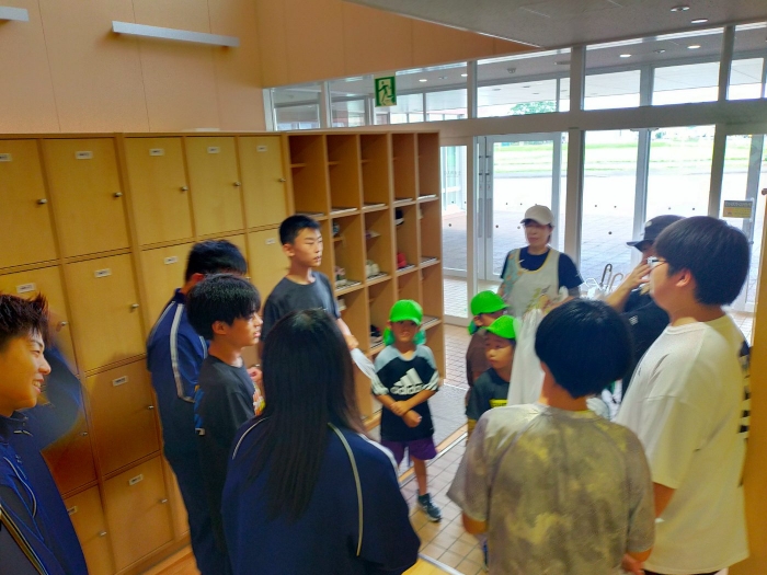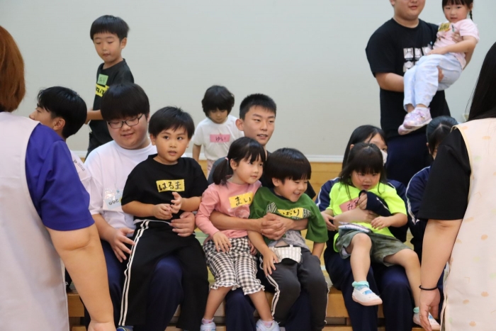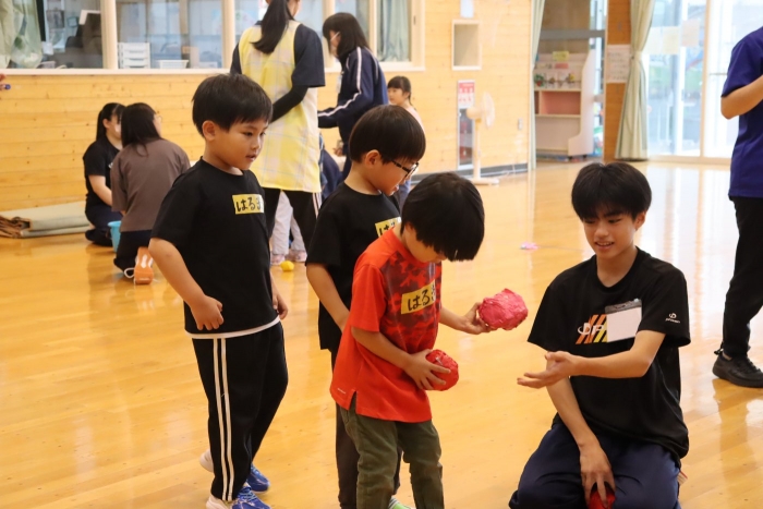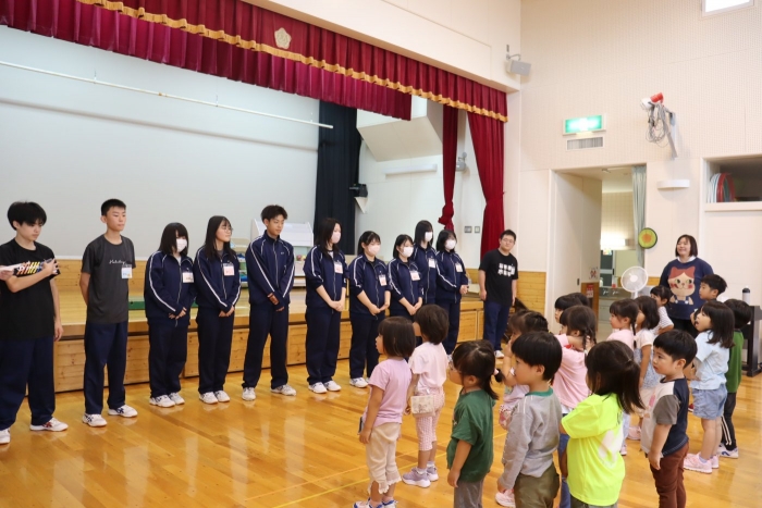 今週、家庭科の授業で3年生が幼稚園訪問を行いました。幼児とたくさん交流し、有意義な時間を過ごしました。戻ってから何と幼稚園児がお礼にと来校し、幼稚園で育てた作物をいただきました。ありがとうございます。
