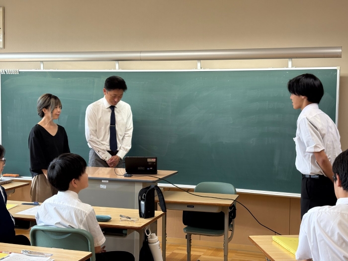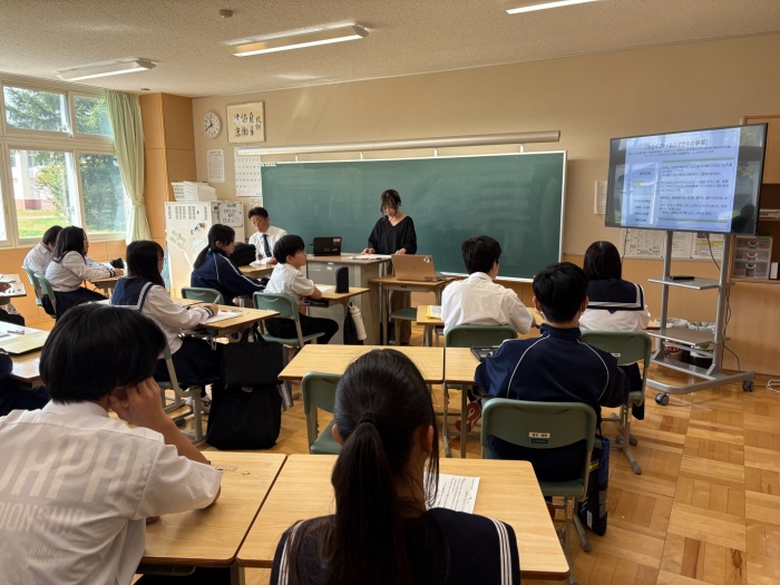 本日、2年生の総合的な学習の時間で牛乳に関わる講話がありました。地元別海の生産者や事業所の方をお招きし、2名の講師がそれぞれ、おいしい牛乳ができるように気を付けていることや、別海の牛100%による乳製品の販売や流通についてなどお話しし、あっという間の1時間を過ごしました。今後、この学びを活かしていければと思います。
