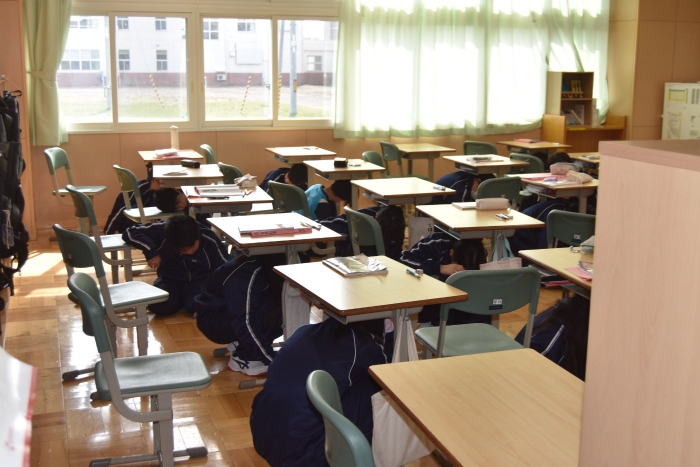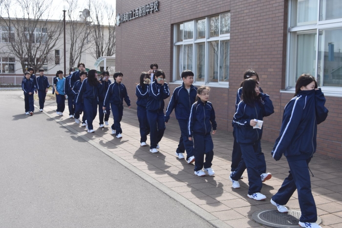 例年は5月に実施していますが、中学校に進学した1年生が少しでも早く避難経路を確認できるよう、今年度は4月に実施しました。