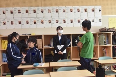 昨日のあれこれ。 2023年09月26日(火) 日々のできごと 今週は教育大学釧路校から2名の学生さんが、本校でへき地校体験実習を行っています。 5日間という短い実習ではありますが、二人はそれぞれ2,3年生の学級でそれぞれの研究のテーマに沿って学びます。 朝の出会いの時間。 お昼休みに3年生教室で。 午前中授業を覗きに行くと、1年生は書写の時間でした。 平仮名が難しいんですよね・・・ そしてお昼休みには、後期生徒会役員選挙へ向けて、選挙管理委員会が開催され 立候補者・責任者の皆さんへ向けた説明会が開催されていました。