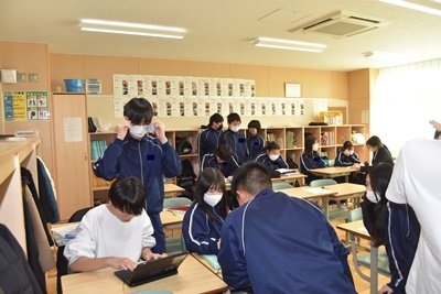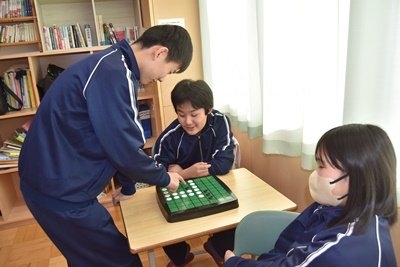 評議会に多数出席している2年生教室には、3人だけが残って楽しんでいました。
