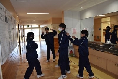 講堂でおしゃべりしていた3年生たちです。