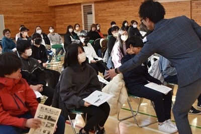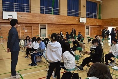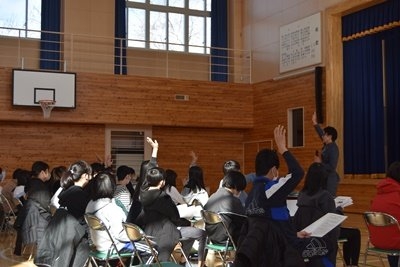少し緊張気味?に来校した6年生の皆さんでしたが、玄関や講堂に入る時には、「おはようございます。」とさわやかなあいさつがきこえました。
