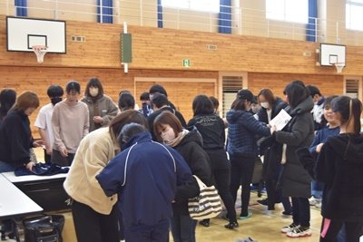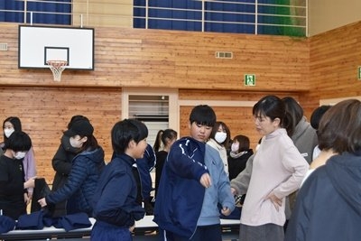 ジャージ合わせが終わって歓談中。ピースしてくれてる子がいました☺
