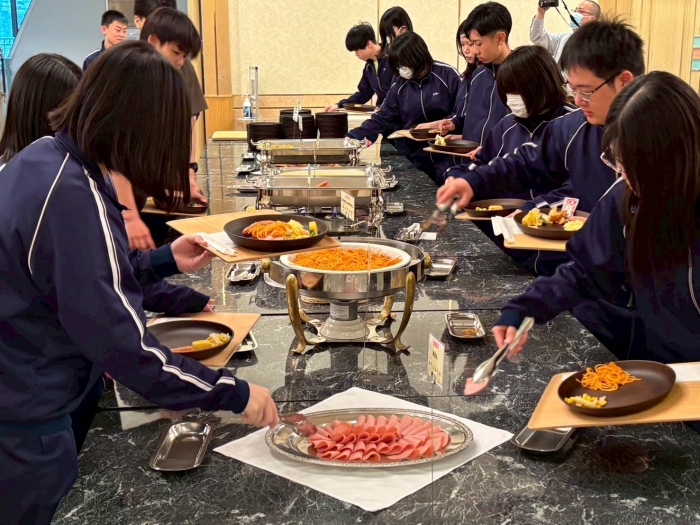 修学旅行⑤ 2025年06月05日(木) 修学旅行2日目がスタートしました。 体調を崩す生徒もおらず、朝食もきちんと取ることができました。朝の動きも早く、清掃点検もスムーズに終えたため、予定よりも早く遊園地に到着しています。