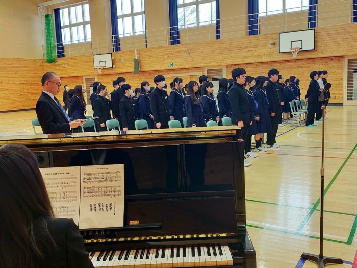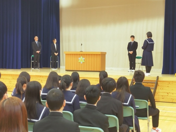 着任式・始業式 2025年04月07日(月) 行事 本日、令和7年度がスタートしました。春休み中は先生方が教室準備等を行い、新しく来た先生方を交えて校歌の練習もしました。 7日の午前中は着任式と始業式が行われ、その後各クラスで集会や教科書の配付、学級開きを行いました。 今年度も保護者、地域の皆様におかれましては、本校の教育活動にご理解とご支援を賜りますようお願い申し上げます。